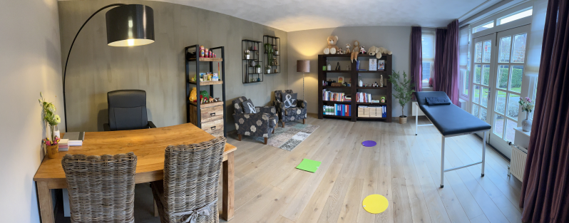 De praktijk beschikt over een wachtruimte en er is voldoende gratis parkeergelegenheid voor de deur.